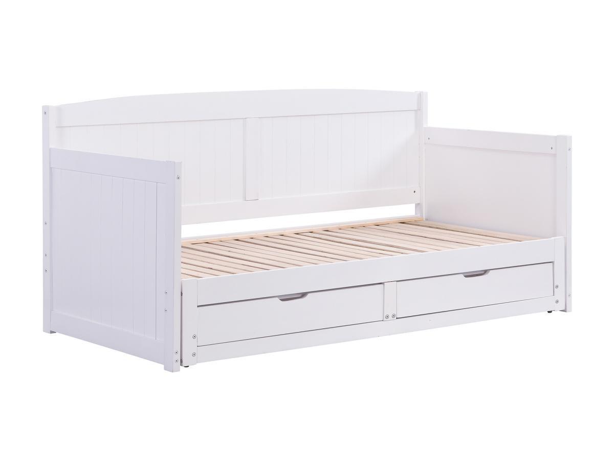 Vente-unique, Lit gigogne banquette 90 x 190 ou 180 x 190 cm - Avec sommier peigne et tiroirs - Pin et MDF - Blanc - DINIVA
