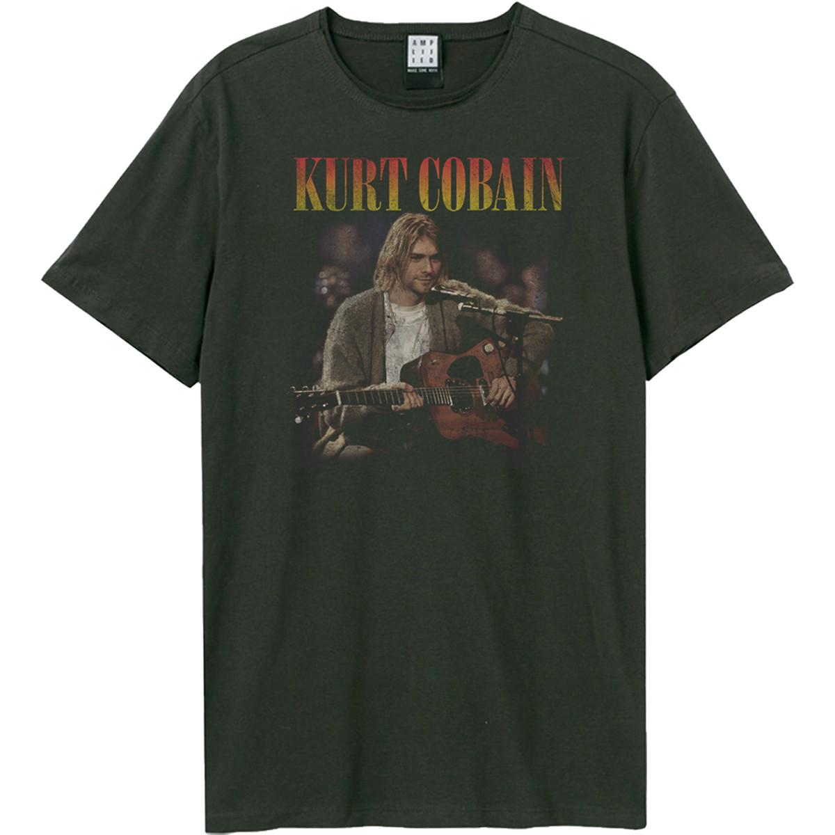 Ce T-shirt présente un col rond classique et des manches courtes, offrant une coupe confortable et polyvalente. Le devant est orné d'un imprimé graphique de Kurt Cobain tiré de la performance emblématique "MTV Unplugged in New York", ce qui en fait une pièce distinctive pour les fans.