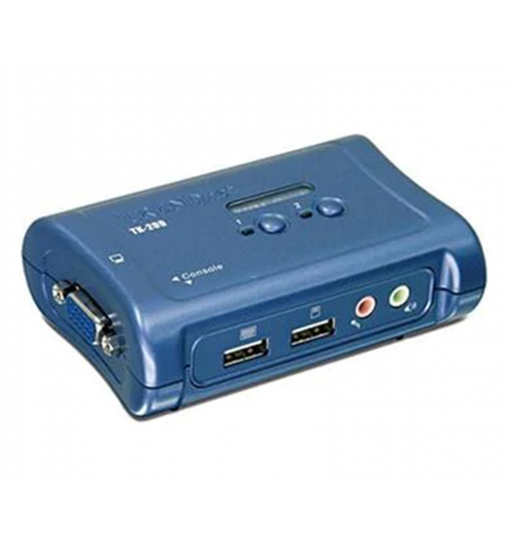 Le switch audio KVM à 2 ports PS/2 vous permet de contrôler des PC multimédia à laide dun seul clavier, dun moniteur, dune souris, dun micro et dune paire de diffuseurs. Le switch KVM vous permet non seulement de partager votre moniteur, votre clavier et votre souris mais également de partager votre micro et vos diffuseurs. En appuyant simplement sur un bouton, il élimine les enchevêtrements de câbles passant entre 2 PC. Grâce à ses fonctions de connectivité à chaud, de recherche automatique et ses touches de raccourci, le TK-208K est le choix idéal pour le partage de 2 PC. Des câbles KVM séparés sont fournis.