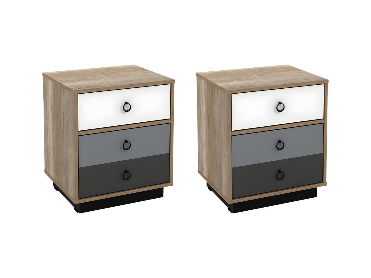 Vente-unique, Lot de 2 tables de chevet - 1 tiroir et 1 porte - Coloris : Naturel, blanc et gris - KRYPTON