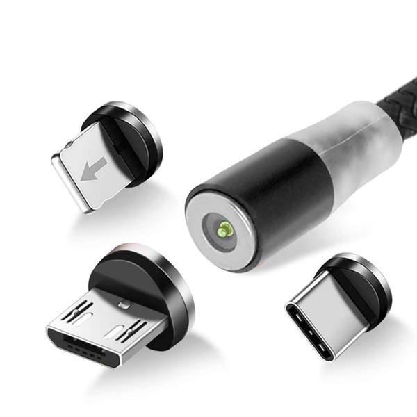 Câble de charge magnétique 3 en 1 : 3 connecteurs pour une compatibilité maximale (USB-C, micro-USB et Lightning). Solide : cordon alliage de cuivre et polymère. Charge rapide : puissance max de 2.4A. LED lumineux. Longueur 1m.