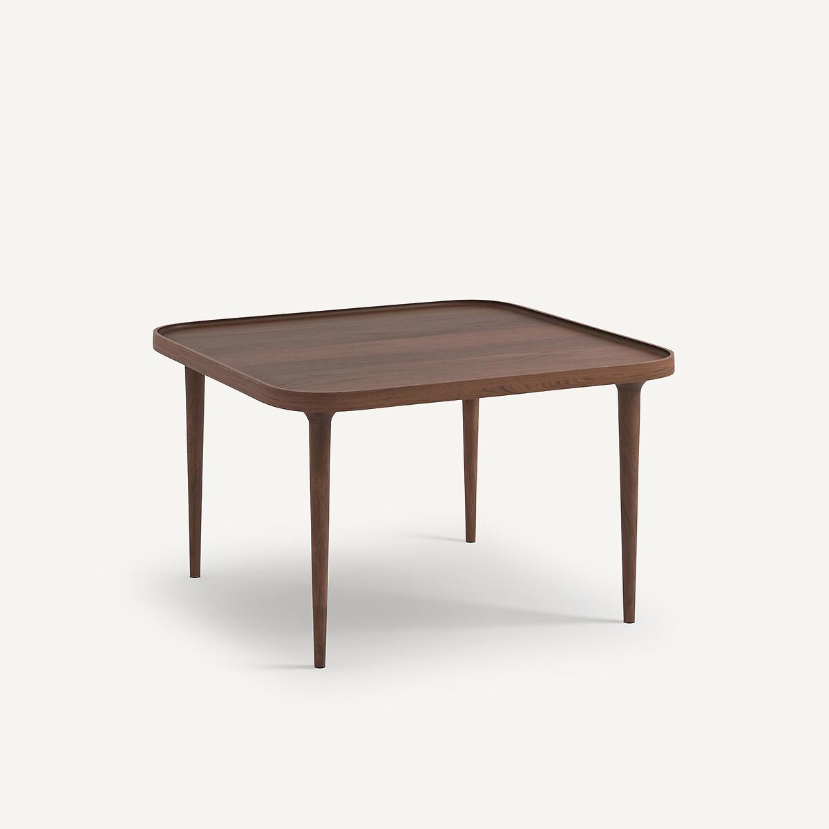 La table basse noyer massif Magosia. Pieds fuselés, plateau fin en noyer massif. À jouer également en tables gigognes avec les autres produits de la gamme Magosia.