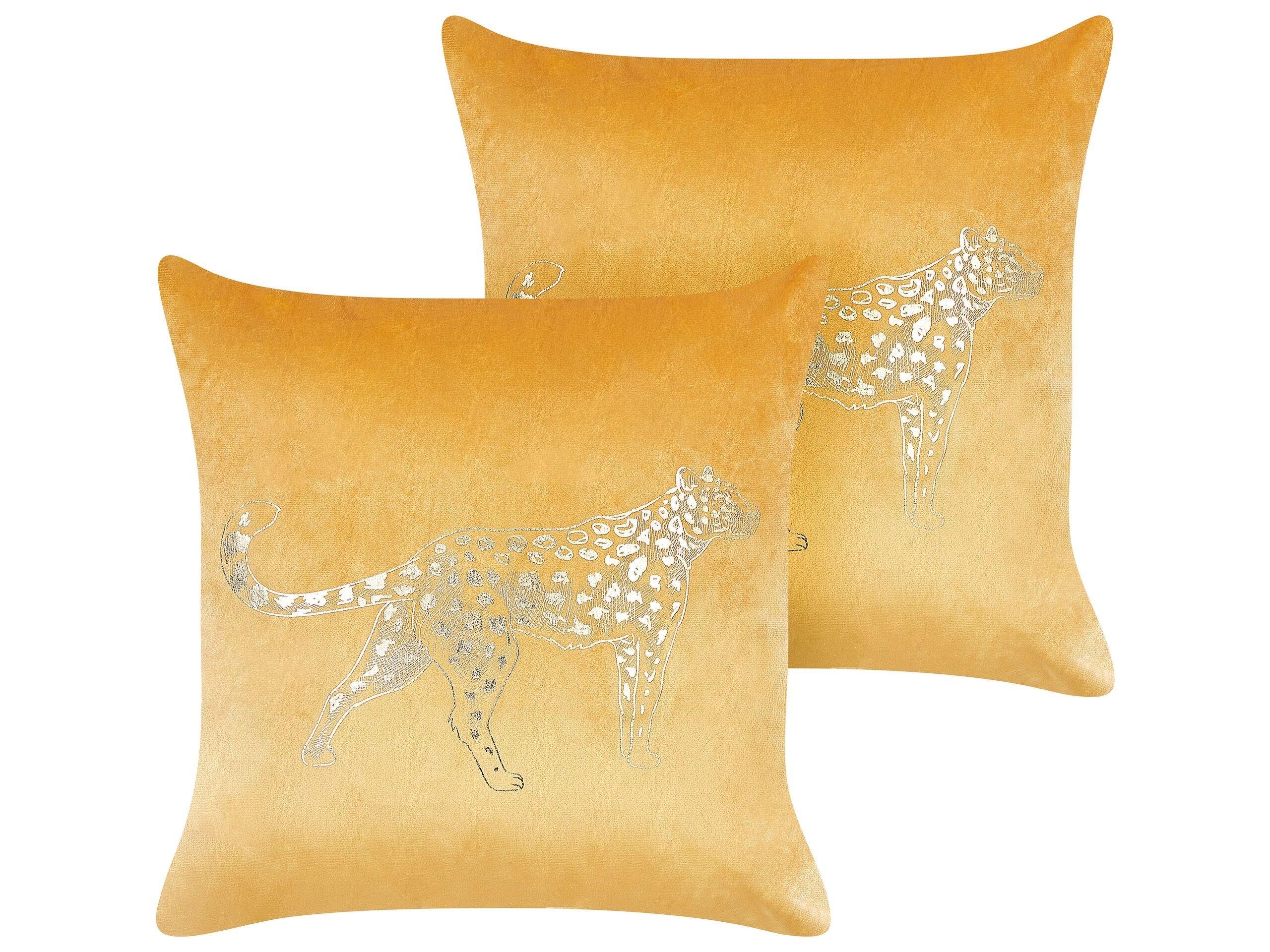 Coussins décoratifs glamour. Ajoutez une touche d'exotisme à votre intérieur et décorez-le avec cette série de coussins. Grâce aux décorations dorées, ils s'accorderont avec d'autres meubles ou accessoires aux accents de la même couleur. Fabriqués en polyester, ils sont confortables, doux et résistants. Ils ne nécessitent pas d'entretien particulier, et leur nettoyage est possible grâce aux housses amovibles. Ils attireront tous les regards dans un salon ou une chambre à coucher de style moderne ou safari.