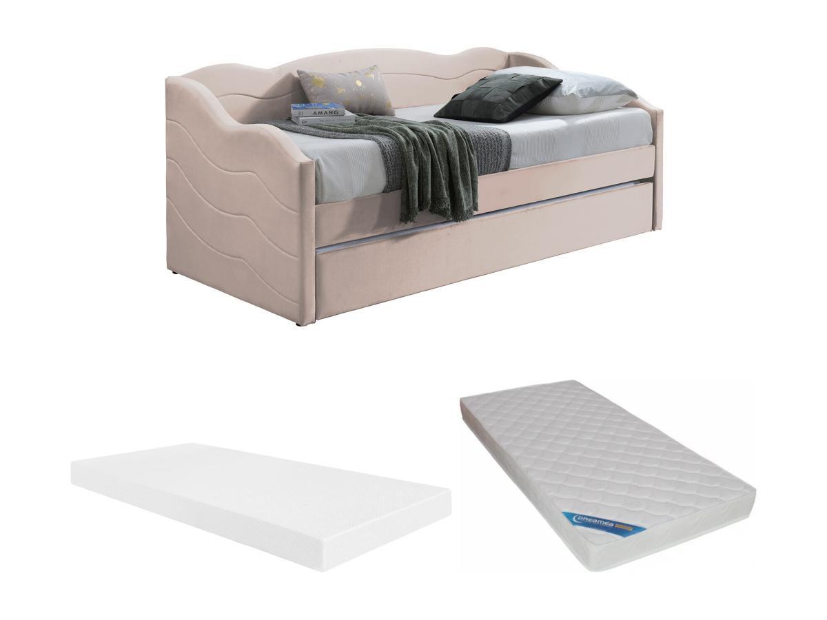 Vente-unique, Lit banquette gigogne 2 x 90 x 190 cm - Velours - Rose + Matelas - LENVIA