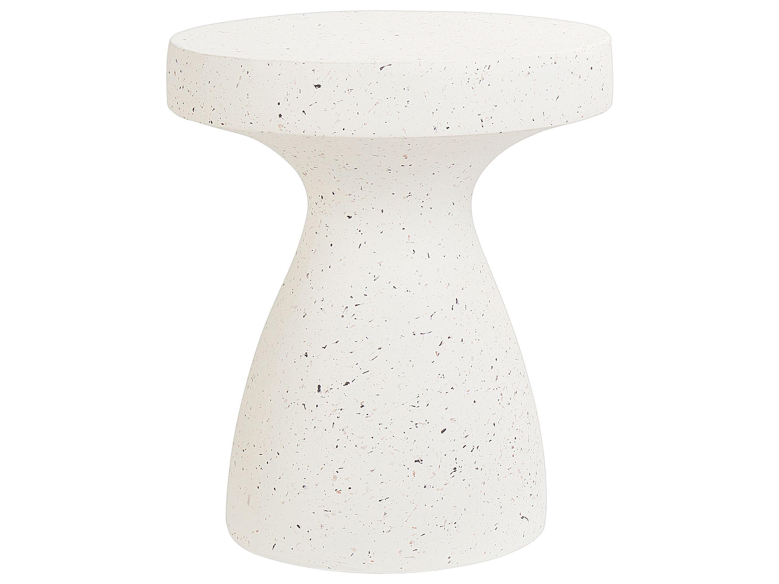 Table d'extrémité ronde pour l'extérieur. Cette table d'appoint, conçue pour l'intérieur et l'extérieur, embellit n'importe quel espace grâce à son attrait classique. Fabriquée en oxyde de magnésium et peinte à la main, elle imite parfaitement l'aspect du béton tout en étant plus légère. Avec sa finition effet terrazzo, elle dégage un charme méditerranéen et ajoute une touche de vacances au décor.