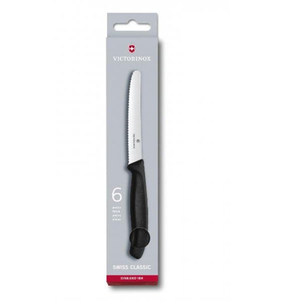 Victorinox couteau à steak set 6 pièces bleu Set de couteaux de table à lames dentelées Avec le set de 6 couteaux de table / tomate Victorinox, veillez à ce que les tomates et autres légumes puissent être coupés soigneusement. Les six couteaux sont équipés de lames tranchantes et impressionnent par leur design intemporel. Les couteaux, très confortables grâce à leur poignée de forme ergonomique, sont parfaits pour un usage quotidien: coupez les légumes avec eux ou utilisez-les comme couverts multifonctionnels. Après utilisation, les couteaux peuvent être facilement nettoyés au lave-vaisselle.