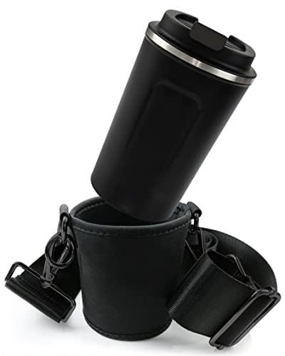 Only-bags.store Ensemble porte-gobelets - Porte-gobelets et tasse thermique à accrocher - Porte-gobelets en néoprène avec bandoulière réglable - en noir - Noir