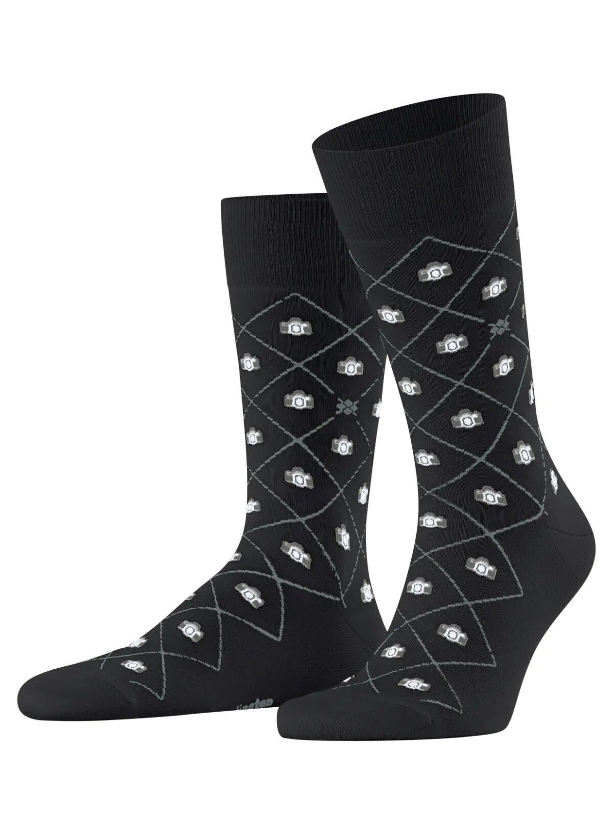 Ces chaussettes présentent un motif stylisé d'appareil photo, réparti sur un motif Argyle classique. L'inscription Burlington est intégrée dans la semelle.
