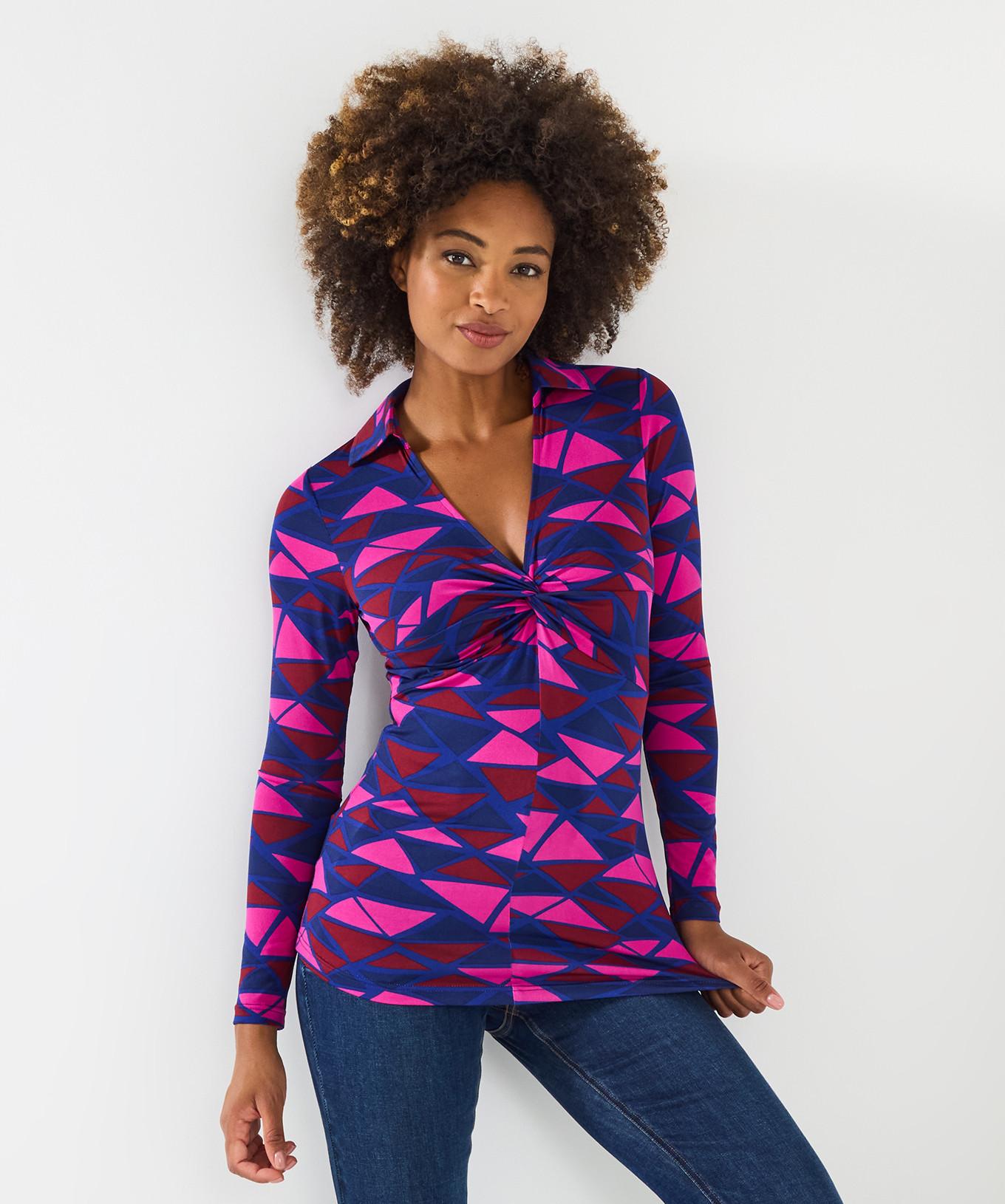 Joe Browns, Top en jersey imprimé géo d'inspiration rétro avec torsade devant