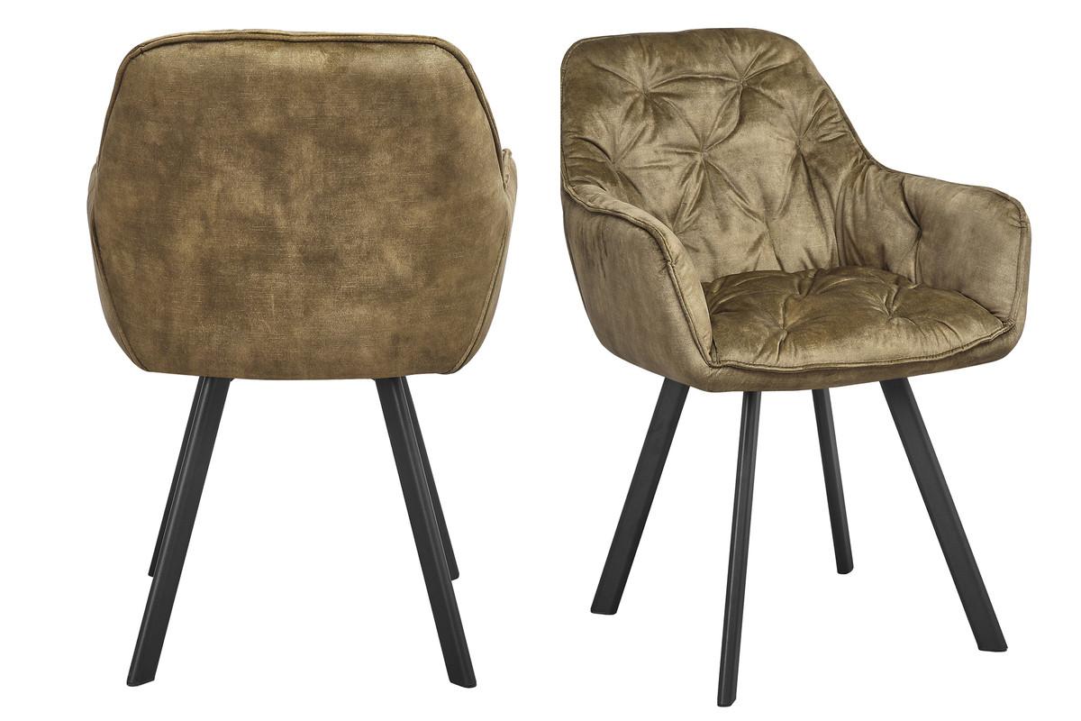 mutoni, Chaise de salle à manger velours vintage vert (lot de 2)