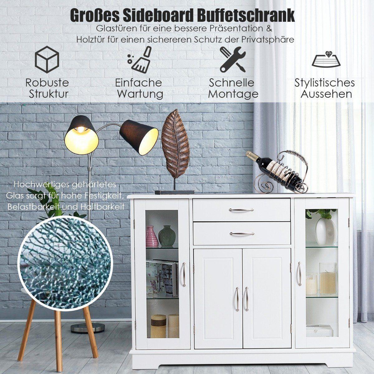Northio Meuble de rangement en bois avec portes et tiroirs en verre trempé Blanc