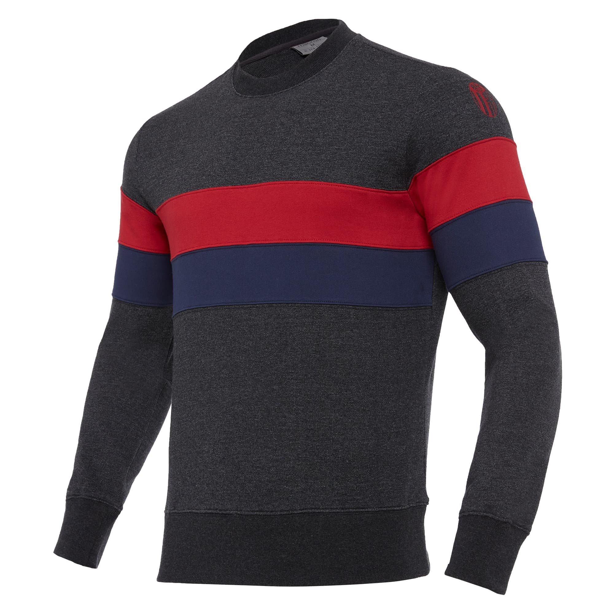 Le logo du club de Bologne est fièrement affiché sur la poitrine, témoignant de votre soutien pour cette équipe emblématique du football italien. Les couleurs vives et les détails soignés ajoutent une touche de style au sweatshirt, en faisant un choix de vêtement à la fois fonctionnel et tendance.