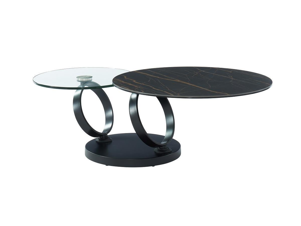 Vente-unique Table basse avec plateaux pivotants JOLINE Céramique verre trempé Effet marbre