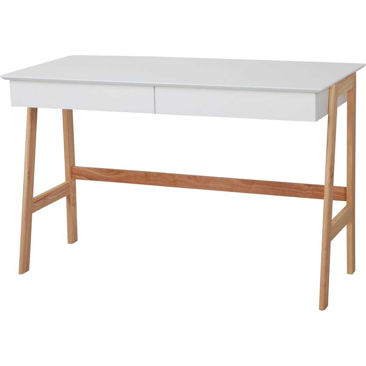 Ce bureau au design scandinave classique peut être placé dans n'importe quelle pièce grâce à sa taille pratique. La combinaison nordique et moderne des couleurs du corps laqué blanc et du bois naturel confère au bureau un flair particulièrement aéré et lui permet de ne pas paraître trop massif, même dans les petites pièces. L'aspect moderne du bureau est encore souligné par l'aspect sans poignée des deux tiroirs.design fonctionnelchic scandinaveadapté aux petits espacestiroirs sans poignéessurface facile à entretenir