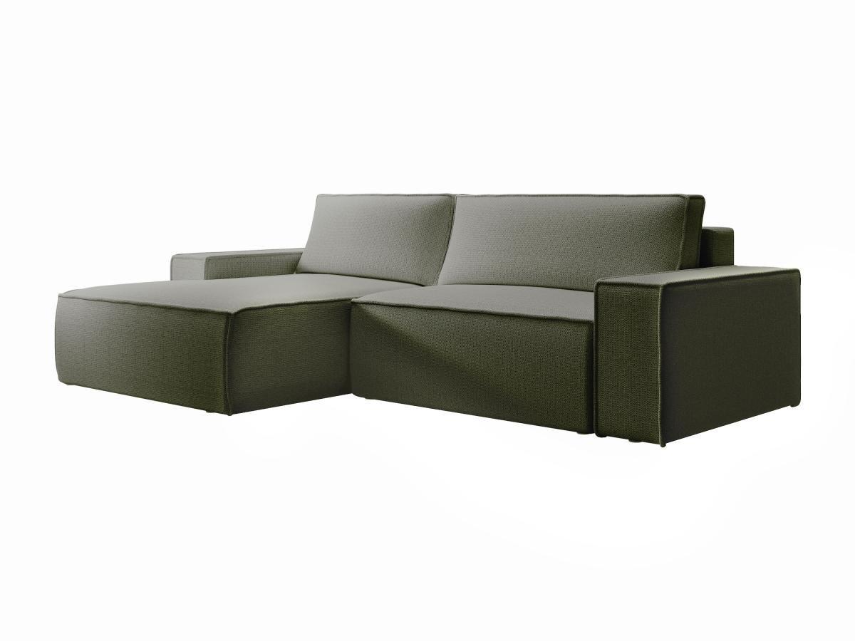 Vente-unique, Canapé d'angle gauche convertible en tissu texturé vert AMELIA