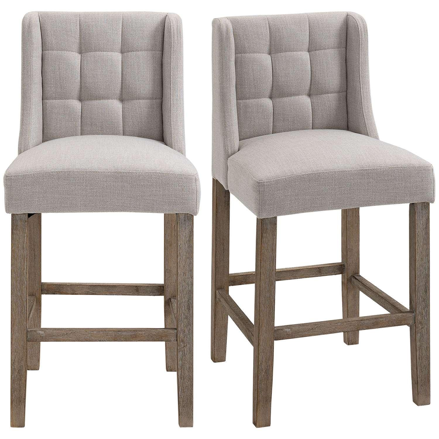 Northio Tabourets De Bar Lot De 2 Chaises De Cuisine Modernes Dossier Bas Toucher Lin Bois D'Hévéa Beige 47X50X101Cm
