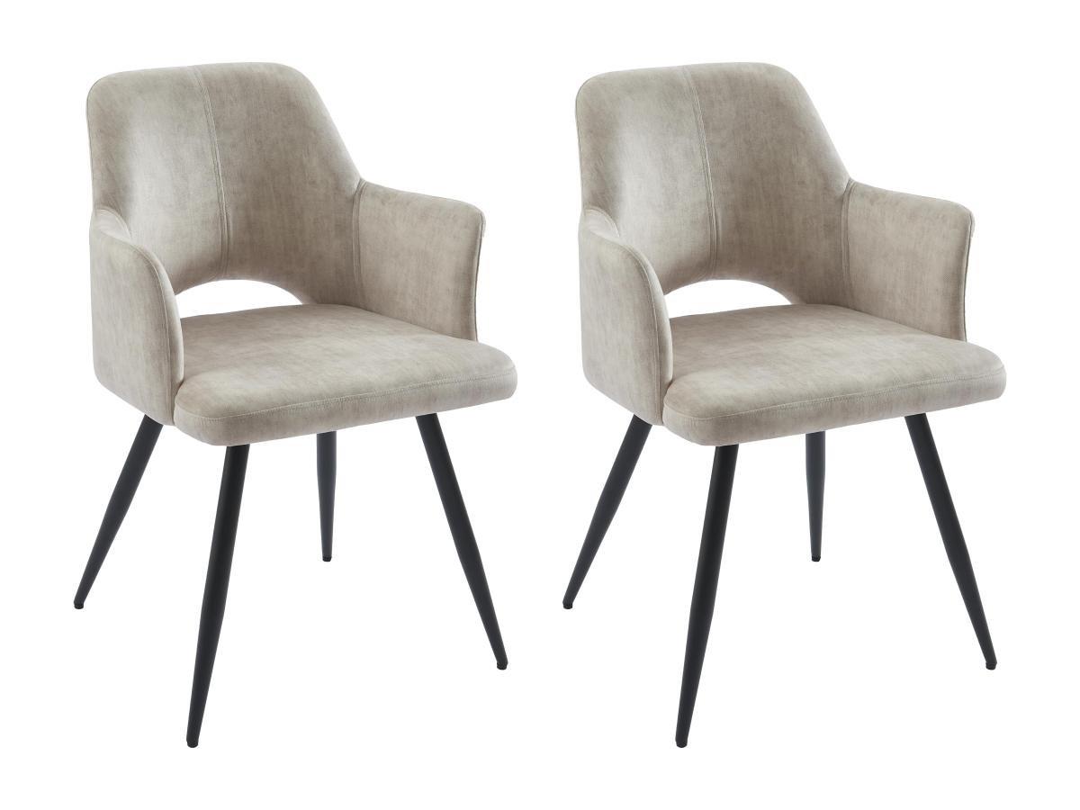 Vente-unique Lot de 2 chaises avec accoudoirs en tissu et métal noir - Beige - KADIJA