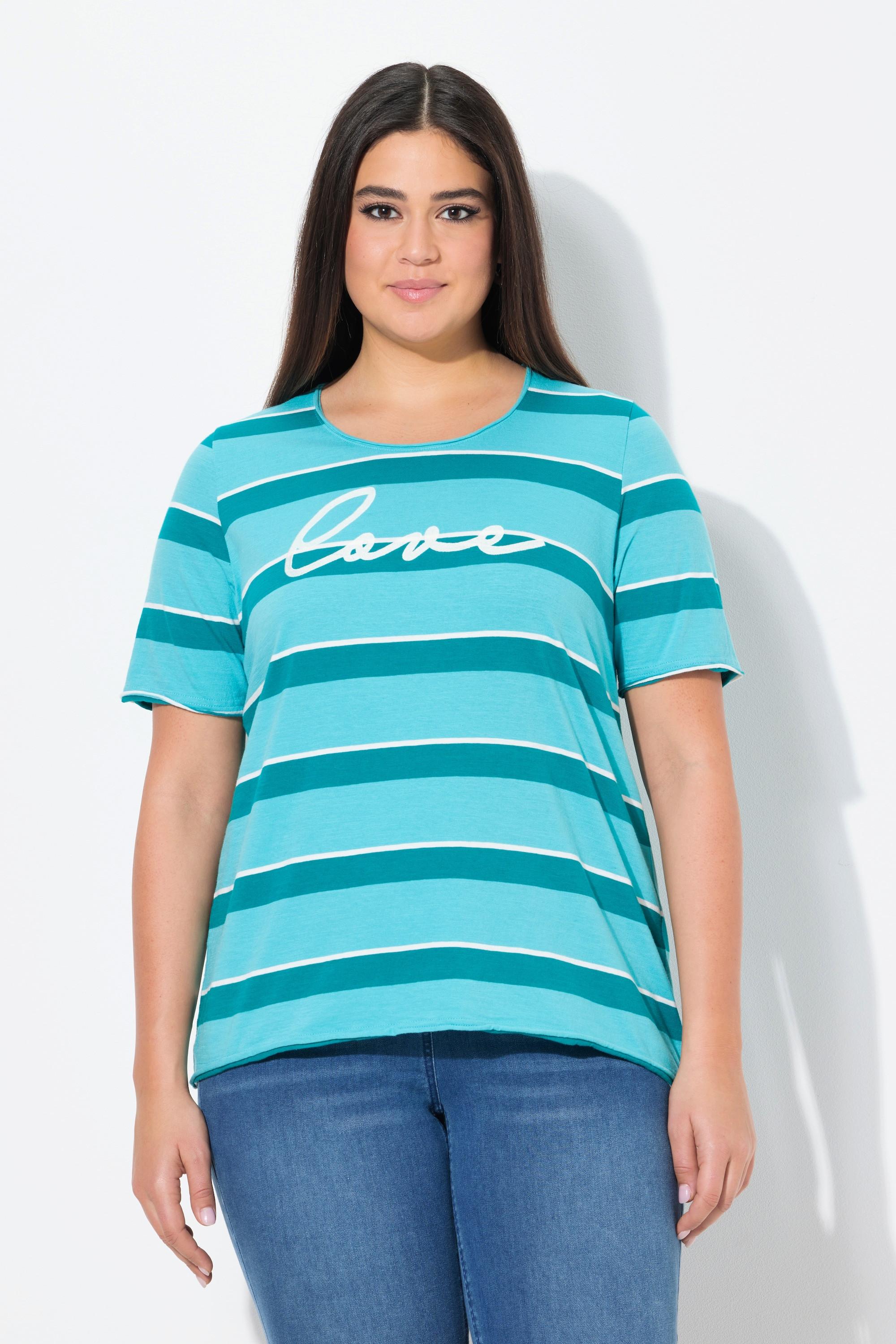 Ulla Popken T-shirt Rayé Broderie Encolure Ronde Manches Courtes Bords Roulottés