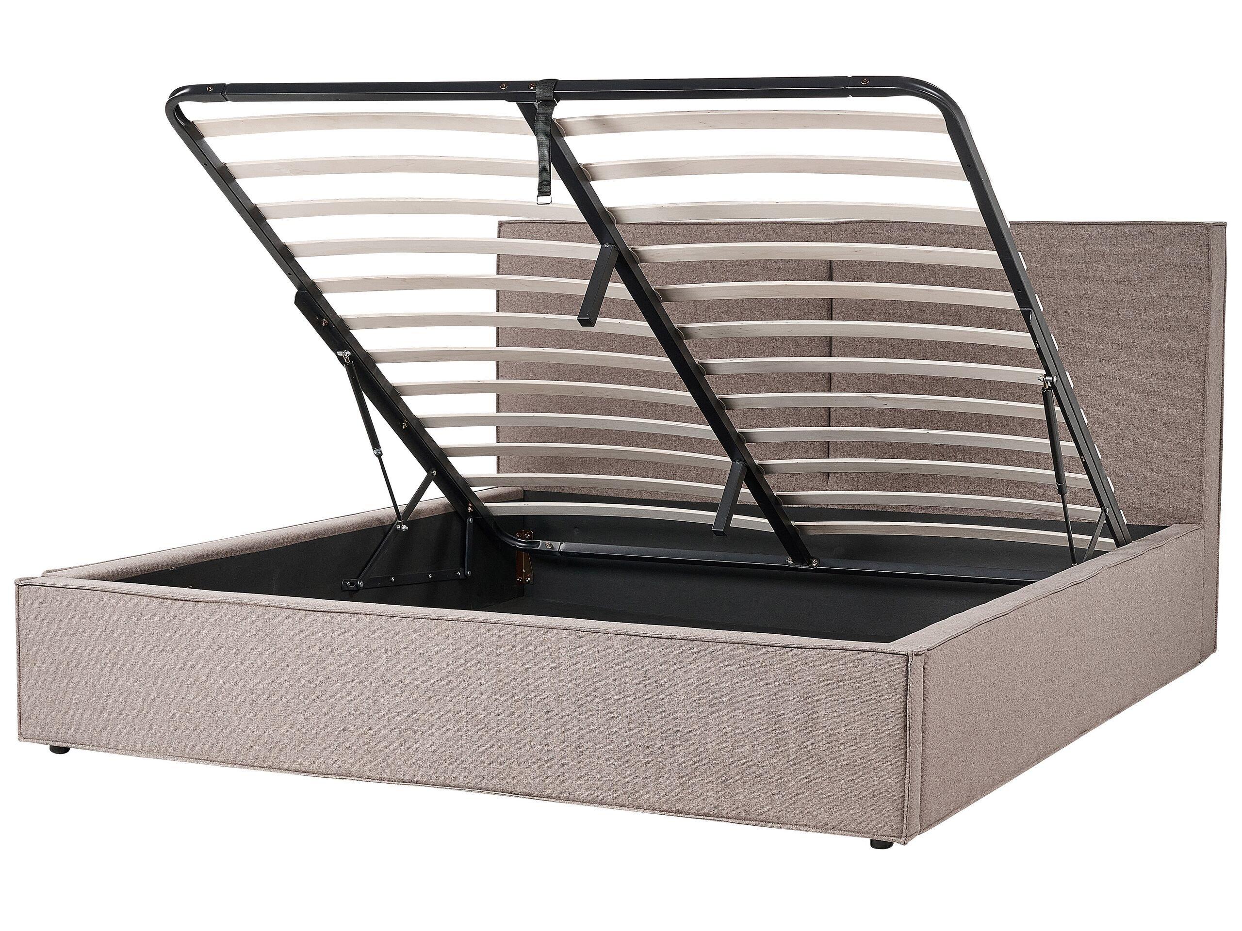 Lit double avec rangement sous le sommier. Si vous recherchez un lit qui allie simplicité, élégance et confort, n'allez pas plus loin que cette pièce minimaliste. Ce lit est parfait pour les chambres à coucher modernes et scandinaves, car il présente un aspect épuré et est revêtu d'un tissu de haute qualité, doux et durable. Le meuble est soutenu par des pieds en bois de pin qui ajoutent une touche de chaleur naturelle et contrastent avec le tissu. Le lit est également doté d'un sommier à lattes qui offre un soutien et un confort optimaux et d'un espace de rangement pour le linge de lit.