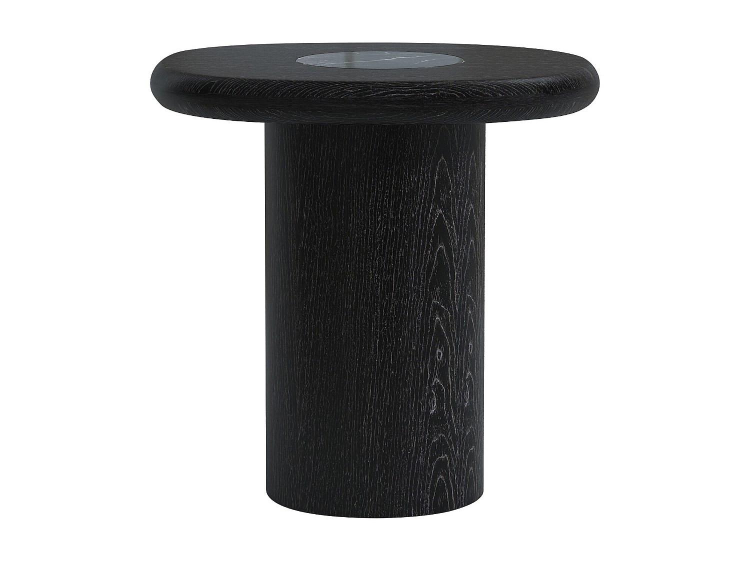 L’ensemble repose sur un pied cylindrique plein, assurant une stabilité fiable et une lecture claire des volumes. Ce piètement renforce la cohérence de la silhouette et facilite l’intégration de la table d’appoint à côté d’un canapé, d’un fauteuil ou en complément d’un espace détente. Le coloris noir souligne quant à lui l’équilibre entre les matières et s’adapte facilement à différents intérieurs.