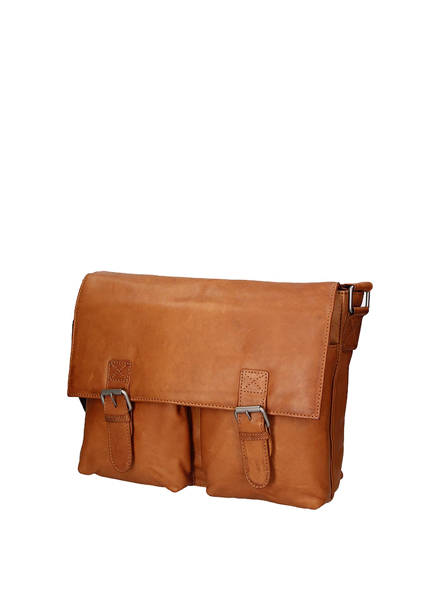 Sac bandoulière pour homme. La fermeture se fait avec un bouton magnétique. Les poches intérieures sont une avec fermeture éclair et deux ouvertes. Les poches extérieures sont une devant avec fermeture éclair et une arrière avec fermeture éclair. La bandoulière est réglable en cuir. Il manque la poignée. Il y a un compartiment interne. Le matériau extérieur est un véritable cuir de veau huilé. À l’intérieur, il est doublé en tissu 70 % coton - 30 % polyester. Dimensions : 35x31x9 cm. Produit de mode