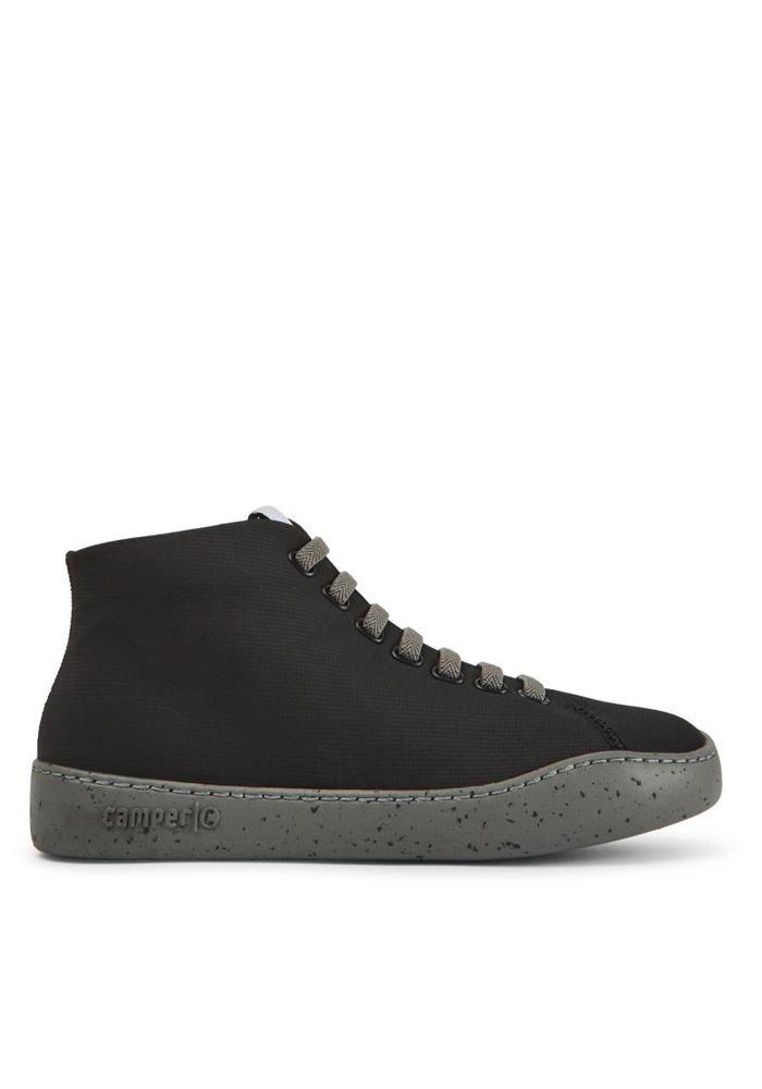 Bottines en textile noir pour femme. Tige en PET recyclé à 80 % avec semelle extérieure contrastante en EVA, semelle intérieure OrthoLite® recyclée et lacets élastiqués.