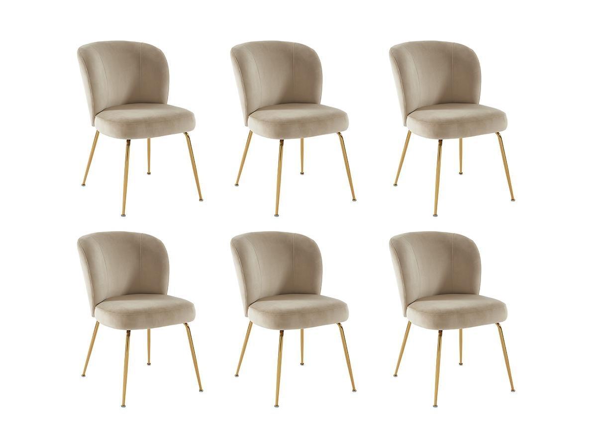 Vente-unique, Lot de 6 chaises en velours et métal doré - Beige - POLPONA