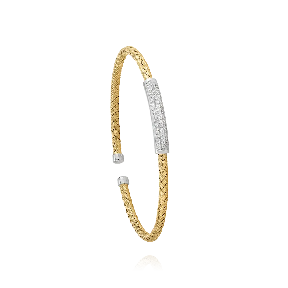 Ce jonc ouvert tressé en argent 925 bicolore accueille un motif central serti doxydes de zirconium. Adapté à tous les poignets, ce bracelet saura vous séduire par sa simplicité et son raffinement.