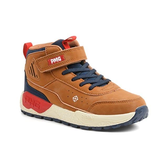 Les bottines Storm de la marque Primigi sont des chaussures de ville élégantes et décontractées, idéales pour l'usage quotidien, les sorties et le travail. Conçues pour offrir un confort optimal, elles disposent d'une doublure en textile et d'une semelle intérieure en cuir amovible. La semelle extérieure est en gomme, garantissant une protection solide. Les bottines Storm sont réalisées en synthétique, avec un dessus et une tige de même matériau. Leur design est caractérisé par une couleur cognac, qui se marie parfaitement avec des touches de bleu marine et de rouge. Les détails de la chaussure incluent une perforation pour une meilleure ventilation et une inscription "STORM" sur la semelle. Les lacets sont en bleu marine et les boucles de soutien sont renforcées pour une sécurité supplémentaire.