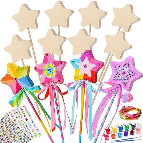 Baguette magique de princesse - Vous recevrez 12 étoiles en bois, 12 bâtons en bois, 8 rubans de 3 m de long (8 couleurs), 1 autocollant diamant, 1 autocollant étoile pierre précieuse, 4 x colle pailletée et 3 sets de 12 couleurs + stylo. Tout cela est suffisant pour que les enfants puissent fabriquer des baguettes magiques de princesse uniques. Droits d'auteur originaux, les infractions seront poursuivies. Matériau sûr : La baguette magique de princesse est fabriquée en bois naturel, avec une surface lisse, ne blesse pas les mains des enfants, c'est une baguette magique sûre, très adaptée aux enfants. Fabriquez votre propre baguette magique : Les enfants peuvent laisser libre cours à leur imagination pour colorer le bâton en bois, décorer la baguette magique avec des rubans et des pierres précieuses autocollantes et enfin créer une baguette de princesse unique qui appartient aux enfants. Taille-22.0 x 22.0 x 4.0 cm