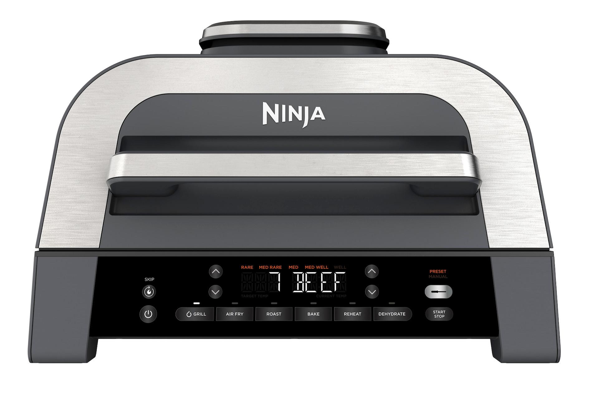 Découvrez la solution tout-en-un pour la friture à l'air chaud, le barbecue et bien plus encore. Le gril et la friteuse à air chaud Ninja 6-en-1 MAX garantissent des arômes de grillade authentiques, sans retournement et avec un dégagement de fumée minimal. Grâce à la technologie Cyclonic Air, la cuisson au gril à haute température assure une cuisson particulièrement homogène et est jusqu'à 45 % plus rapide que les fours à convection. Découvrez 6 fonctions personnalisables : Air Fry (friture à air chaud), Grill (griller), Roast (rôtir), Bake (cuire), Dehydrate (déshydrater) et Reheat (réchauffer). Cuisiner en famille devient ainsi un jeu d'enfant. La cocotte de 3,8 litres offre suffisamment de place pour préparer un rôti de 1,4 kg - idéal pour jusqu'à six portions. La plaque de cuisson XL peut accueillir jusqu'à six burgers ou filets de poulet. Pour de vrais moments de plaisir : Préparez une tarte au citron ou un délicieux gratin de pâtes. Du "rare" au "well done", le système Smart Cook garantit une cuisson parfaite de la viande et du poisson. Le thermomètre à rôti numérique surveille le processus de cuisson et vous indique quand le repas est prêt. La plaque de gril, la marmite et le panier croustillant sont revêtus de céramique antiadhésive, sans PTFE ni PFOA, et peuvent être facilement nettoyés au lave-vaisselle. Comprend : Casserole (3,8 l), panier croustillant (3,8 l), plaque de gril XL, thermomètre de cuisson numérique, protection contre les éclaboussures, brosse de nettoyage et livret de recettes. Testé avec des bâtonnets de poisson et des saucisses en utilisant la fonction Air Fry (friture à air chaud).