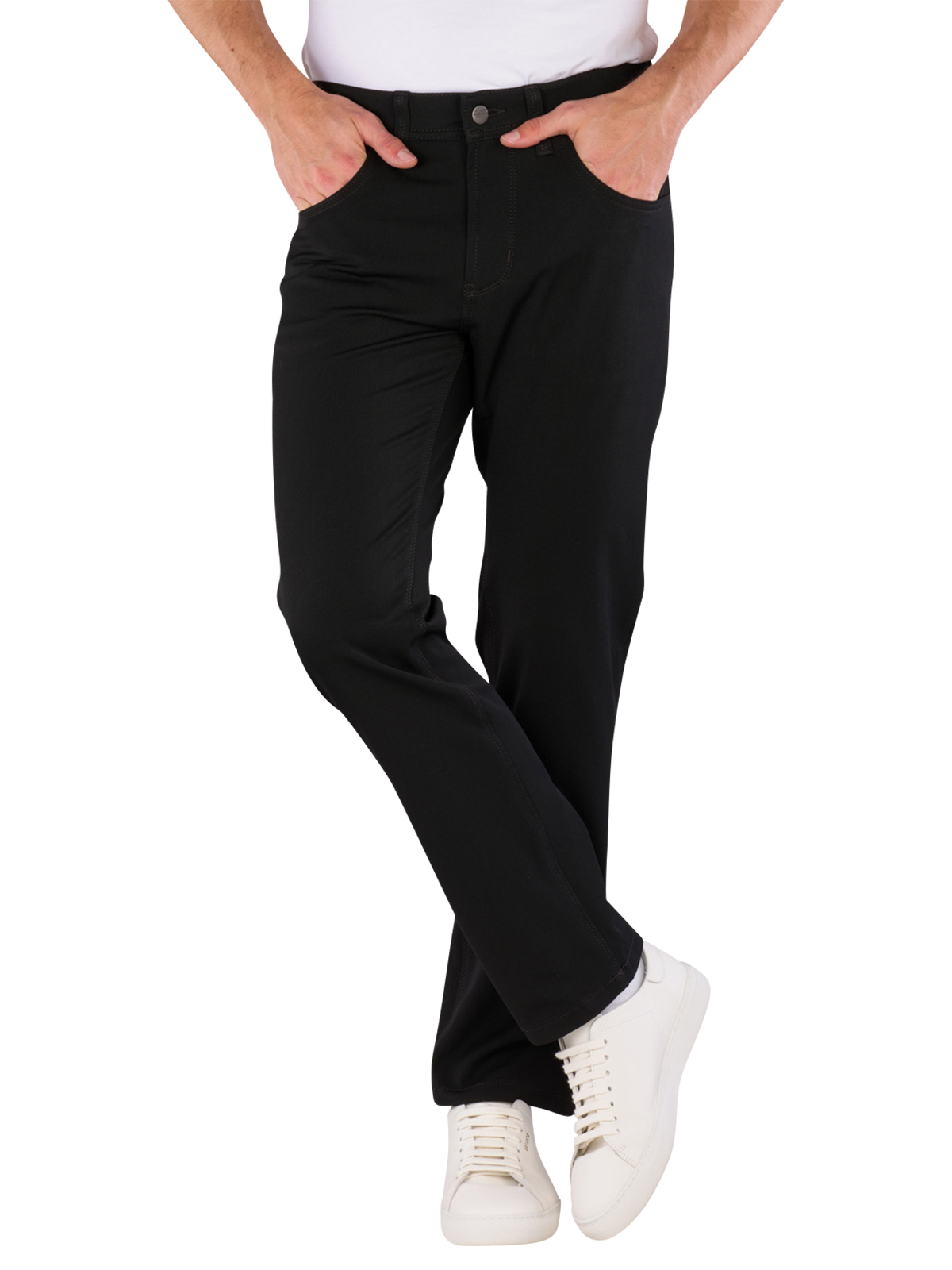 Ce pantalon Rando 5-poches en noir classique allie style et confort dans une coupe droite. Avec sa taille mi-haute et son tissu fin et élastique, il offre un confort optimal pour les hommes actifs. Le design à cinq poches offre un espace de rangement suffisant, tandis que la fermeture éclair assure un maintien sûr. Ce pantalon est idéal pour un usage quotidien ou des activités de loisirs décontractées.
