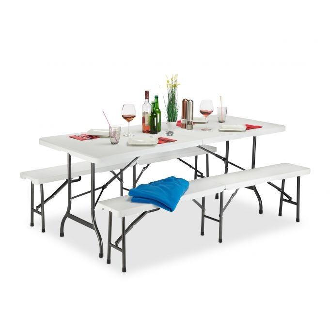 Ce salon de jardin embellit votre jardin ou votre camping grâce à son plastique durable et résistant aux intempéries et ses pieds métalliques pliables pour un rangement facile.