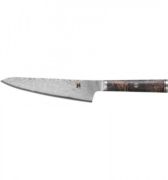Les couteaux de la série Miyabi 5000MCD sont des outils de précision pour les cuisiniers amateurs et professionnels ambitieux, parfaits en termes de fonction et d'ergonomie et absolument uniques en termes de design. Lame Cryodur de haute qualité (67 HRC) avec un noyau dur en acier en poudre MicroCarbide MC 66, entouré de 132 couches constituées de deux types d'acier différents de dureté différente. Motif damassé de fleurs individuelles, tranchant katana et lame aiguisée double face avec gâchette Honbazuke ultra-tranchante en signe de l'art du couteau le plus magistral. Manche fait du meilleur bois d'érable noir.