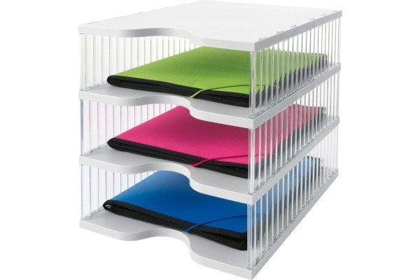 UNOTOWER - 3 Fächer styropost ist die erste modulare Ablage- und Sortierstation für Dokumente und Pakete bis Format B4 und einer Höhe von 90 mm. Somit können auch Unterschriftsmappen, grosse Couverts, Zeitschriften, Kartonhülsen u.a.m. aufbewahrt werden. Mit den mitgelieferten Füssen lässt sich styropost rutschfest fixieren. Sortierstation für Überformate Boden/Deckel lichtgrau, Seitenteile transparent 4 Klebe-Füsse für die Fixierung am Tisch Fachinnenmass: 280 x 380 x 87 mm Inkl. Beschriftungsmaterial Erweiterbar Swiss made
