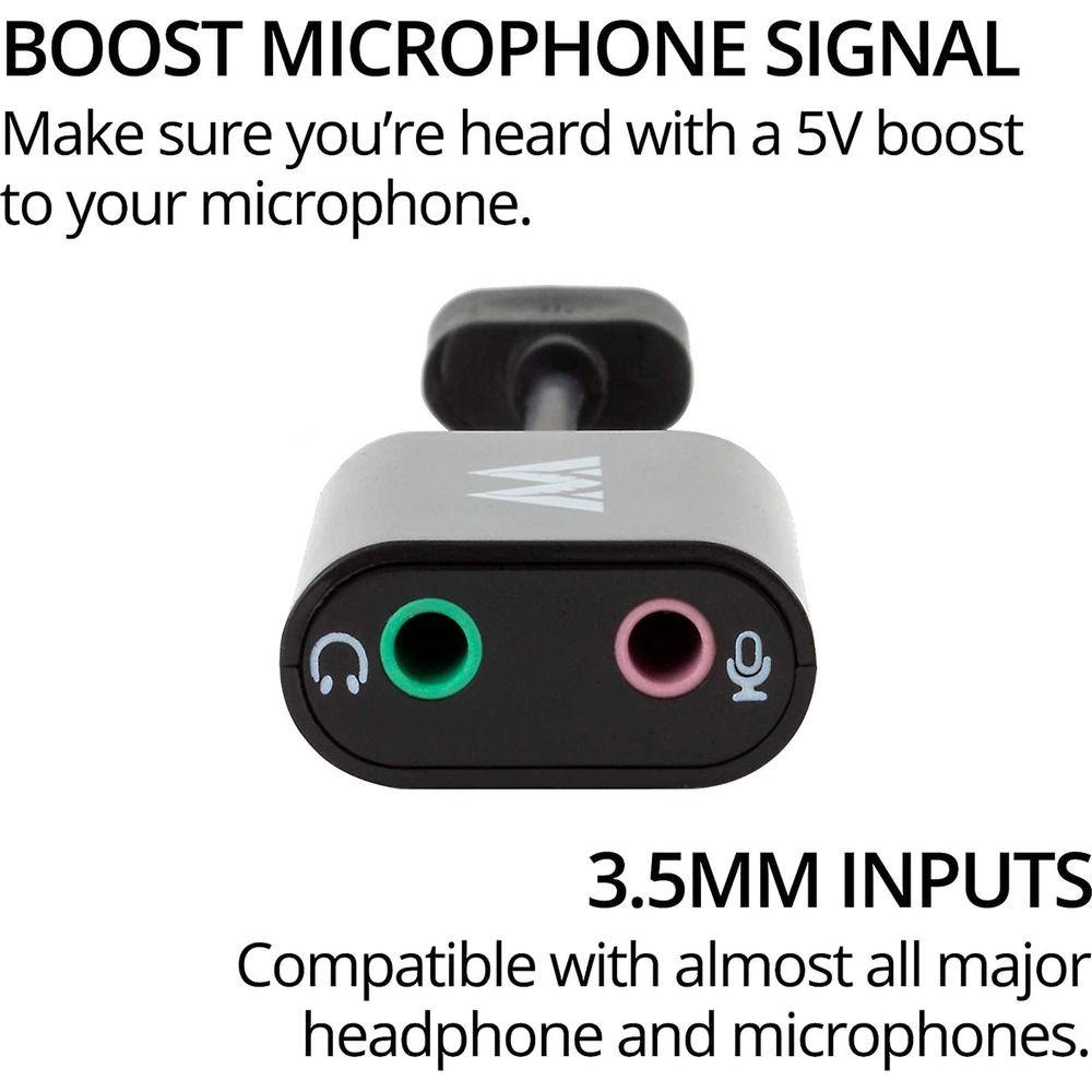 La carte son USB Antlion est ladaptateur audio le plus clair de sa catégorie pour les microphones filaires de 3,5 mm. Ce petit appareil offre une sortie stéréo pour les casques et une entrée micro améliorée qui élimine la majorité des bruits de fond indésirables et augmente le volume du micro.Recommandé pour tous les PC Windows et nécessaire dans de nombreux PC Mac qui ne disposent que de ports USB de type A. Compatible avec PS4, Xbox One, Vive, et la plupart des autres appareils compatibles USB.CaractéristiquesCarte son stéréo externe compacte pour microphones de 3,5 mm, casques et écouteurs. Lalimentation supplémentaire via USB augmente la clarté audio.
