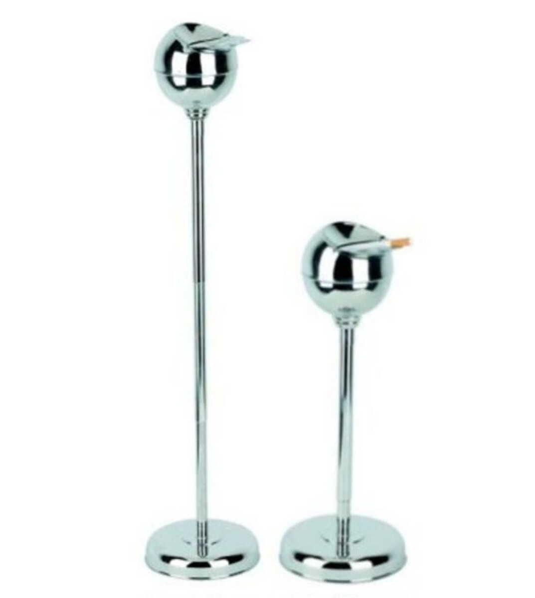 Cendrier sur pied stylé au look rétro Enfin un cendrier qui réfléchit : ce cendrier sur pied stylé et rétro est extensible de 37 à 72 cm et s'adapte ainsi aux besoins individuels. Et en plus, il est absolument chic - la finition brillante et le design élégant font du cendrier sur pied Spheric un bijou absolu ! Les restes de cigarettes sont enfermés en toute sécurité à l'intérieur de la sphère, ce qui fait de ce cendrier un compagnon fiable, même par forte brise. Rond, rétro, ultramoderne et donc très tendance.Hauteur réglable de 37 cm à 72 cm.Le couvercle rond fait office de protection contre le ventDesign rétroIdéal pour les styles d'aménagement modernes et épurésInformations produit Acier chromé, hauteur réglable de 37 à 72 cm, livré démonté