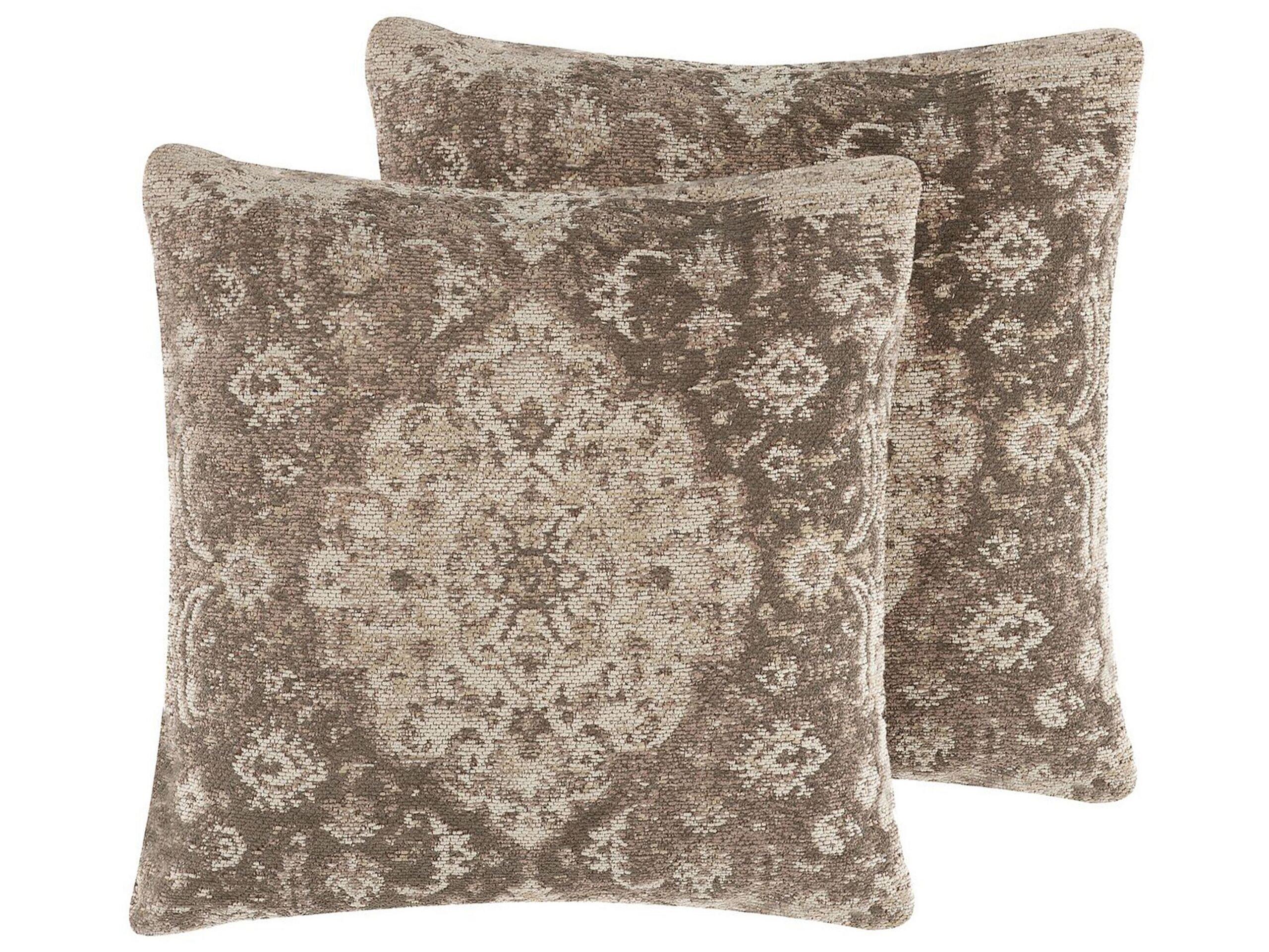 Lot de 2 coussins décoratifs 45 x 45 cm au motif oriental marron. Avec ces 2 coussins décoratifs, chaque intérieur obtient un caractère unique. Les taies de ces coussins sont amovibles et présentent un motif baroque dans des tons marron et beige. Les couleurs lavées font de ces coussins déco des compléments parfaits aux intérieurs traditionnels et vintage.