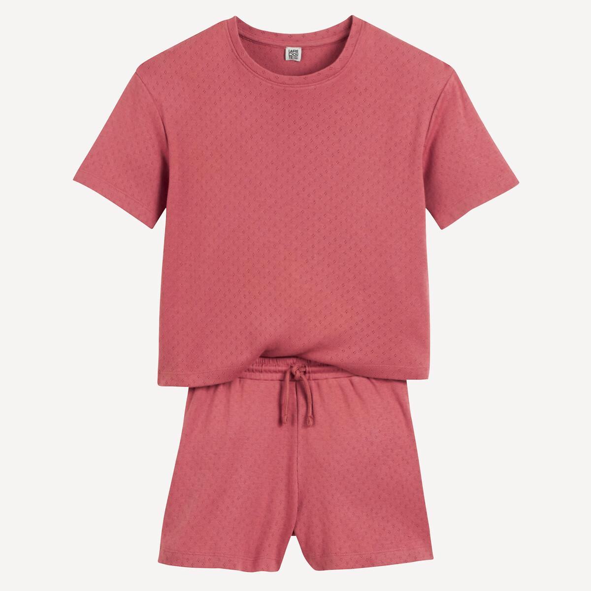 Charmant pyjashort pour des rêves estivaux tout en légèreté !Ce modèle en coton est parfaitement adapté pour les soirées d'été, se composant de deux pièces : un t-shirt à manches courtes et col rond, et un short confortable à taille élastiquée et cordon.