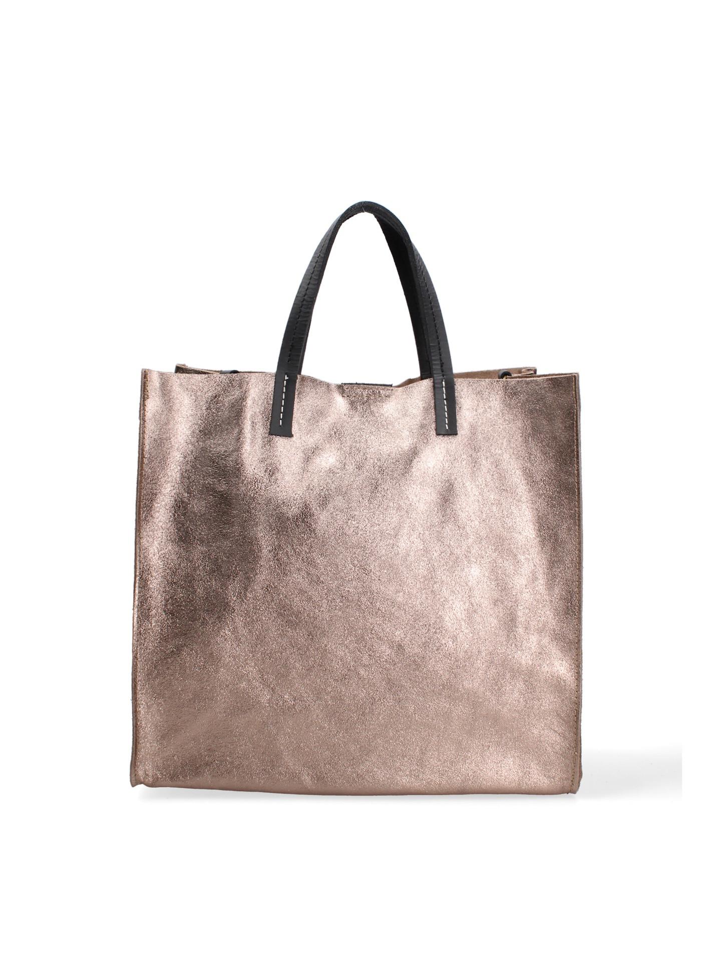 Ce sac à bandoulière, fabriqué en Italie, présente une finition métallique chatoyante, offrant un accessoire élégant pour diverses occasions. Le design comprend des poignées noires robustes, offrant une option de transport confortable. Son intérieur spacieux permet de ranger facilement les essentiels quotidiens.
