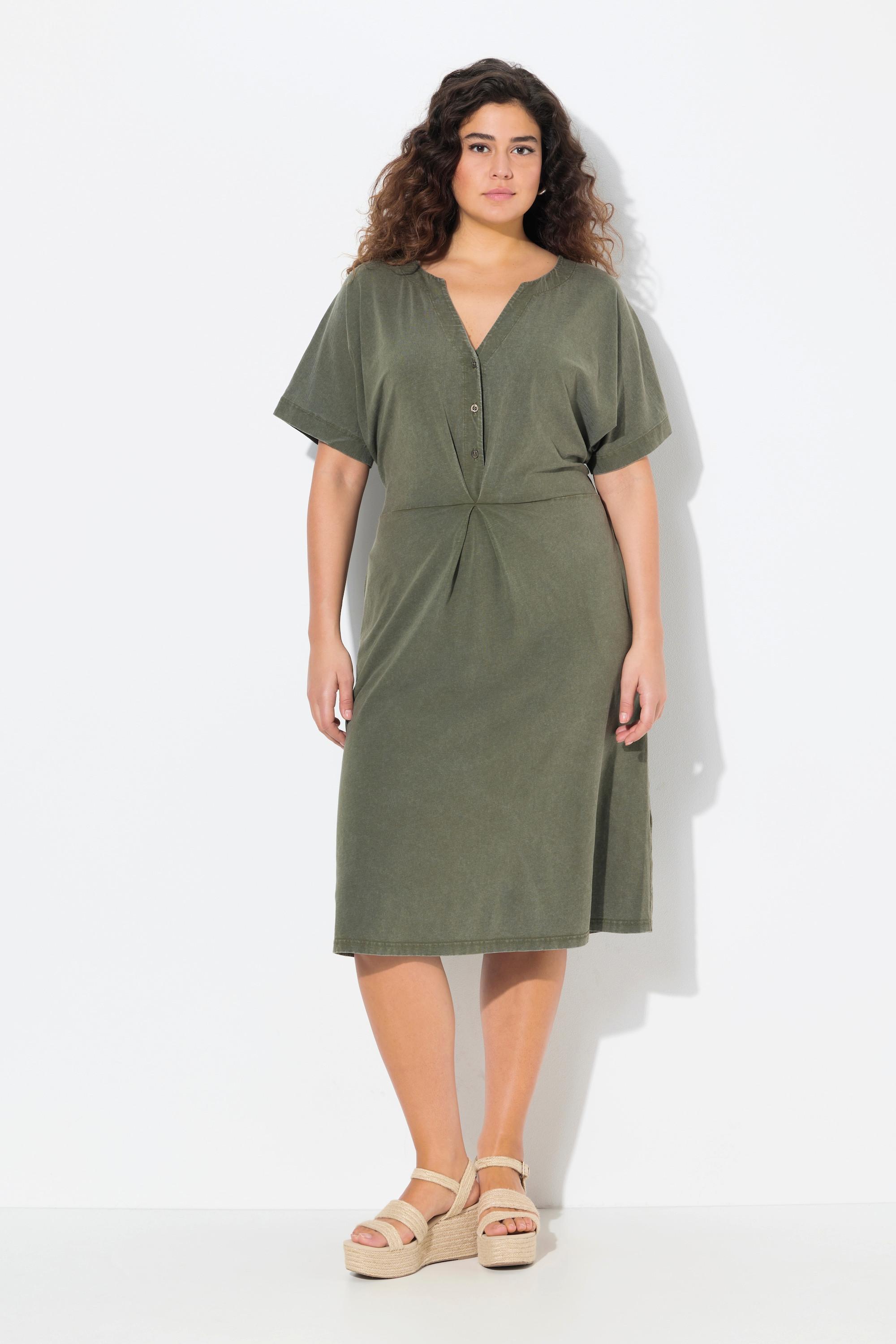 Ulla Popken Robe en jersey Coupe évasée Col tunisien Manches courtes