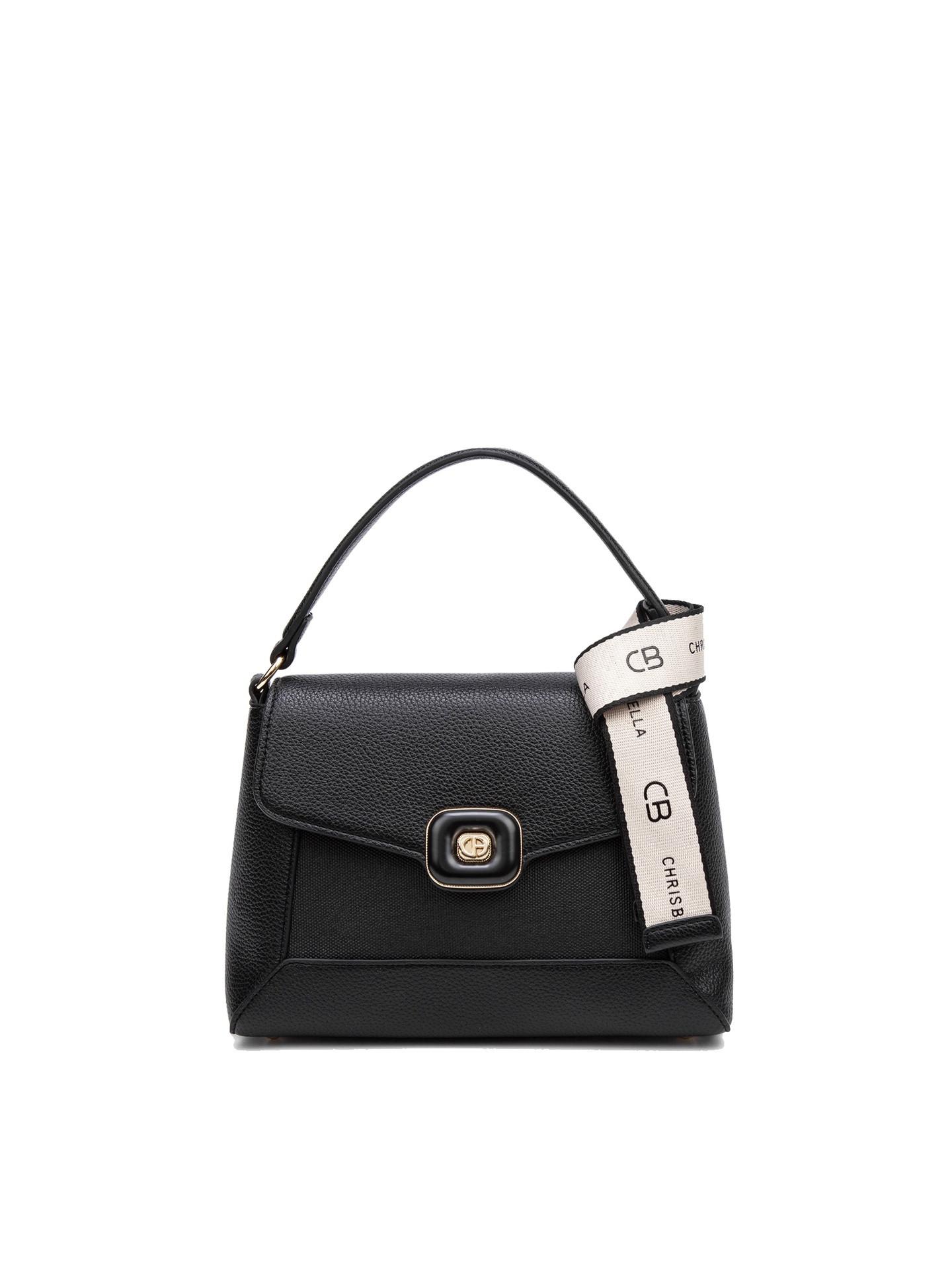 Cet élégant sac à main présente un design structuré avec un rabat et un fermoir doré distinctif. Il est équipé d'une poignée supérieure pour le transport et d'une sangle décorative supplémentaire avec le logo de la marque, offrant une polyvalence de style.