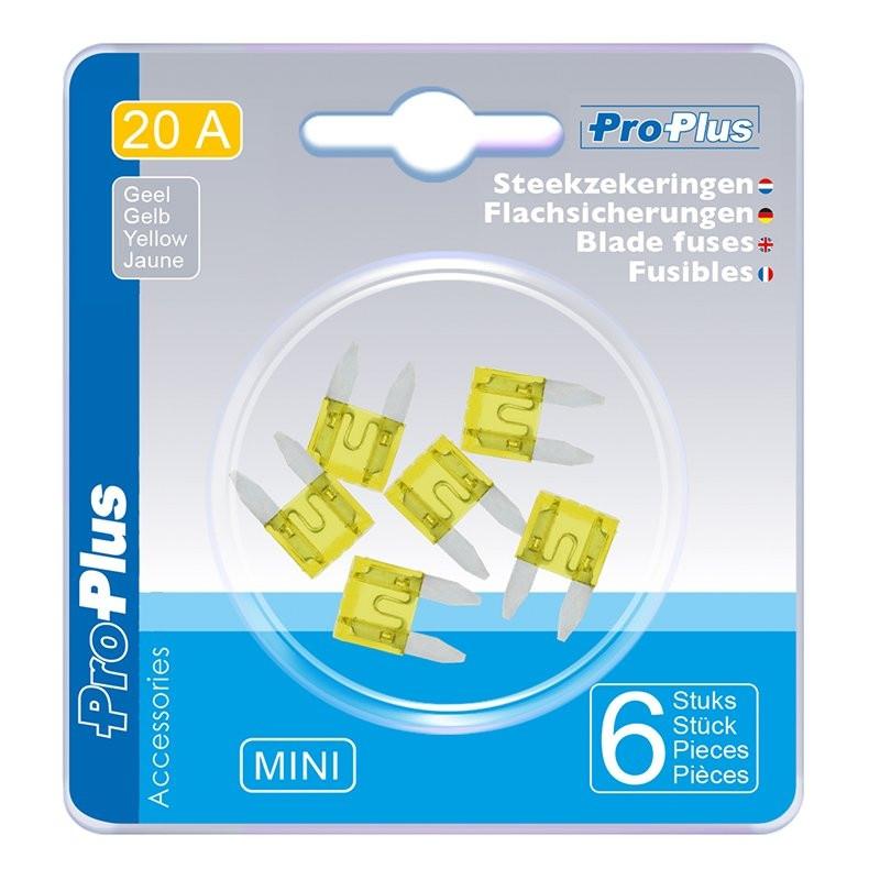 Fusibles à lame mini 20A jaune 6 pièces sous blister