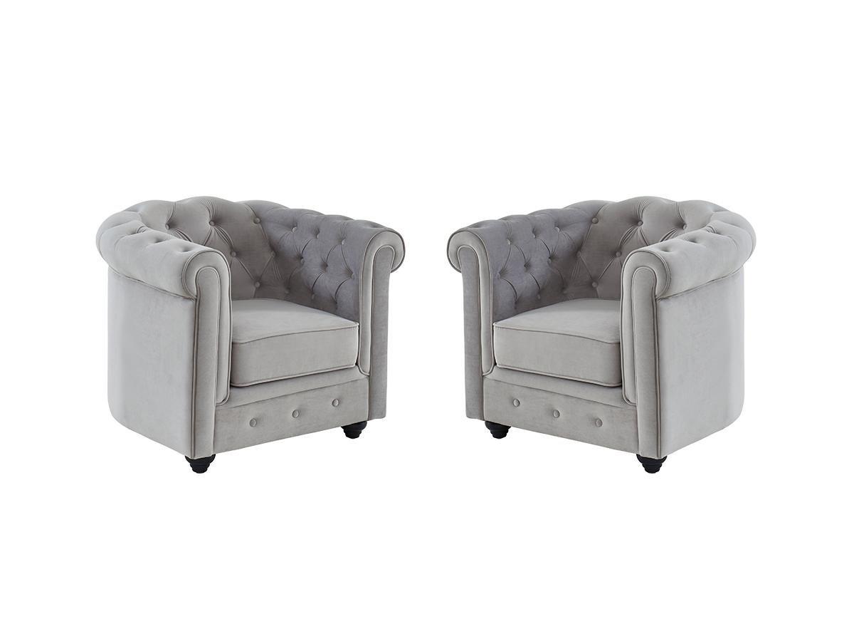 Vente-unique Lot de 2 Fauteuils CHESTERFIELD Velours clair