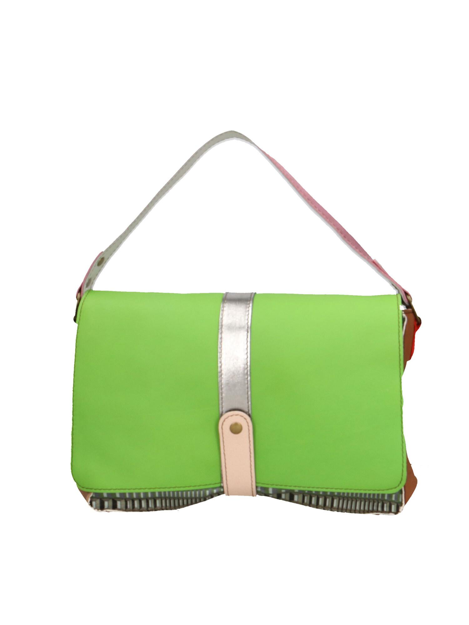 Sac à main pour femme. La fermeture se fait avec un bouton magnétique. Les poches intérieures sont une avec fermeture éclair. Les poches extérieures sont absentes. La bandoulière est réglable et amovible en cuir. La poignée est en cuir. Il y a un compartiment interne. Le matériau extérieur est 100 % cuir véritable. À lintérieur, il est doublé en tissu 70 % coton - 30 % polyester. Dimensions : 22x32x8 cm. Fabriqué en Italie
