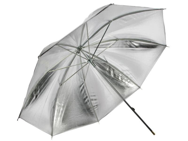 RS-84 argent Shielding secs écran réflecteur, argent, 84 cm Diamètre de 84 cm, 98 cm de portée arc de Se plie comme un parapluie Convient pour tous les flash de studio Un écran réflecteur fournit une lumière douce uniforme. Le revêtement de surface d'argent fournit de la lumière tandis que le contraste d'une surface blanche. L'écran réflecteur peut être comme un parapluie plié et ajuste une unité flash de studio, quel que soit le fabricant. opération A la différence des écrans de lumière transmise ne soit pas flashé à écrans réflecteurs à travers l'écran, mais dans l'écran. Les hangars de revêtement de surface réfléchissant la lumière sur le sujet, ce qui le rend un peu plus concentré qu'un parapluie translucide.