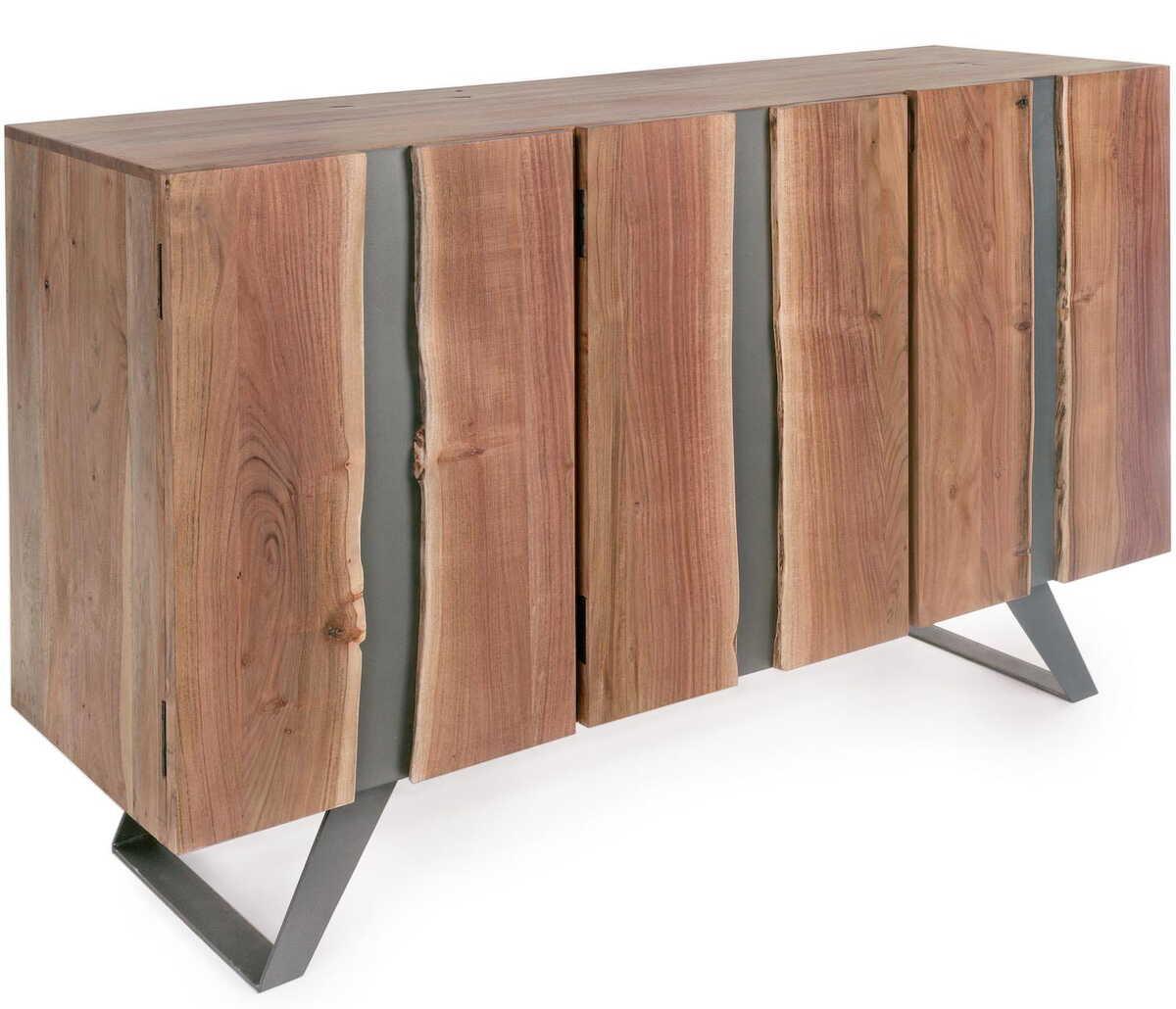 Structure en bois d'acacia, pieds en métal. Chaque pièce est UNIQUE. Une étagère par porte.