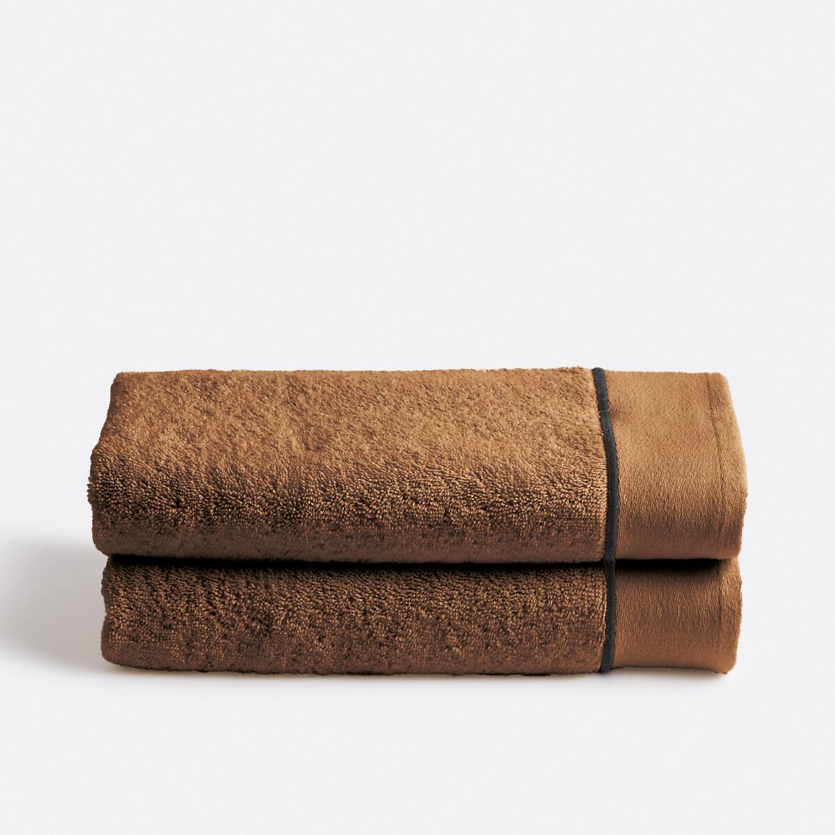 Esthétique chic pour le lot de 2 serviettes de toilette Victor en éponge de coton peigné. Finition par point bourdon contrastant et liteau tissé. Une création d'éponge signée La Redoute Intérieurs. Fabriqué au Portugal.