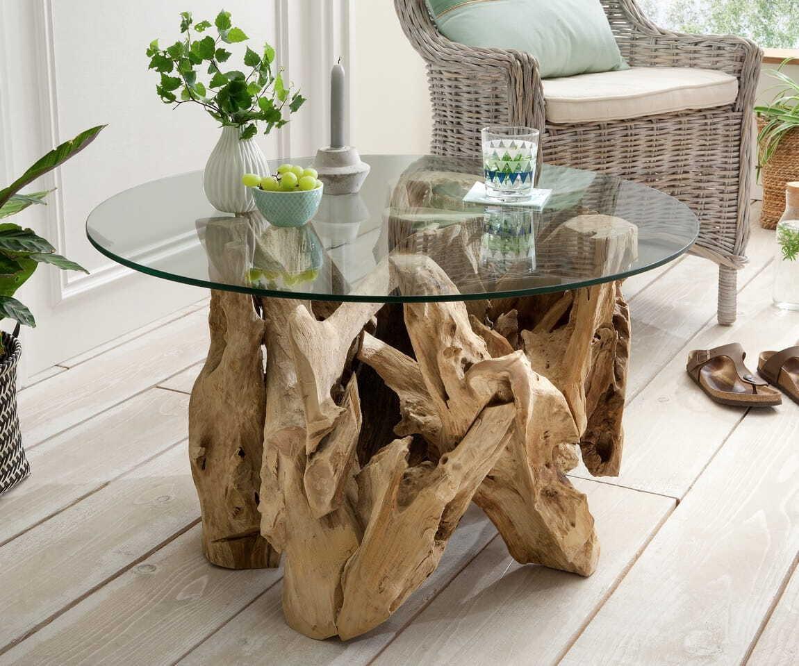 bois recyclé, couleur naturelle avec plateau rond en verrehauteur d'env. 40 cmATTENTION : Les photos sont données à titre d'exemple et peuvent différer de la taille commandée.