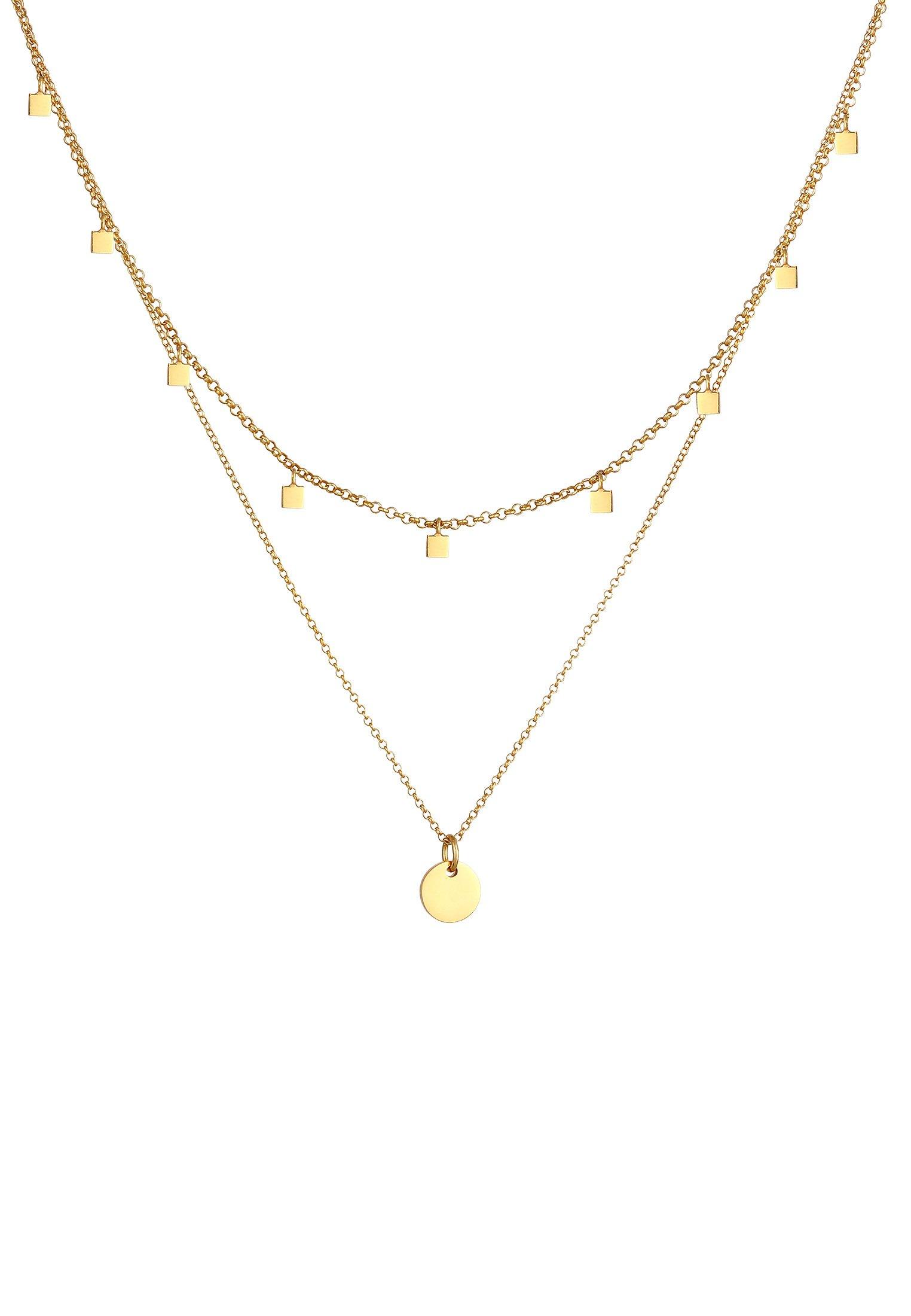Cet ensemble de colliers assortis avec amour est fait à la main à partir de 925/1000 argent plaqué d'or le plus fin. Le collier ras du cou court de 40 cm de long avec ses pendentifs carrés en geo-look est un must have de base polyvalent. Combiné au collier de plaquettes de 50 cm de long, cet ensemble de bijoux est le parfait calque pour la vie quotidienne. Polyvalente et belle, cette création de décor est adaptée à chaque occasion et à chaque style parmi les différentes variations de la chaîne.